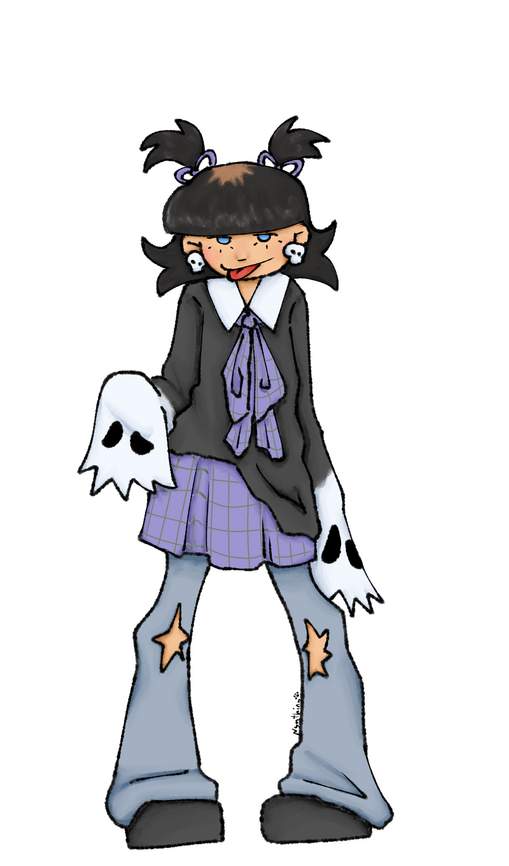 Atsuko is an oc in the project sekai universe. she has a strong interest in all things horror, and because of this she formed a group to produce horror shorts/music videos. this group consists of her twin brother, his classmate, and a girl she met on the street. when she was younger, atsuko was bullied for her interests and this lead to her leaving school to be home schooled instead.
